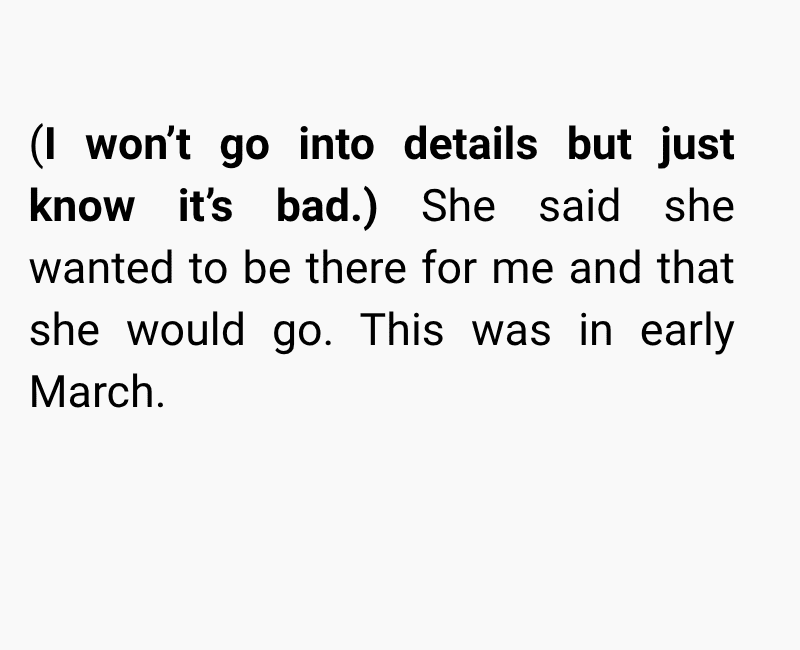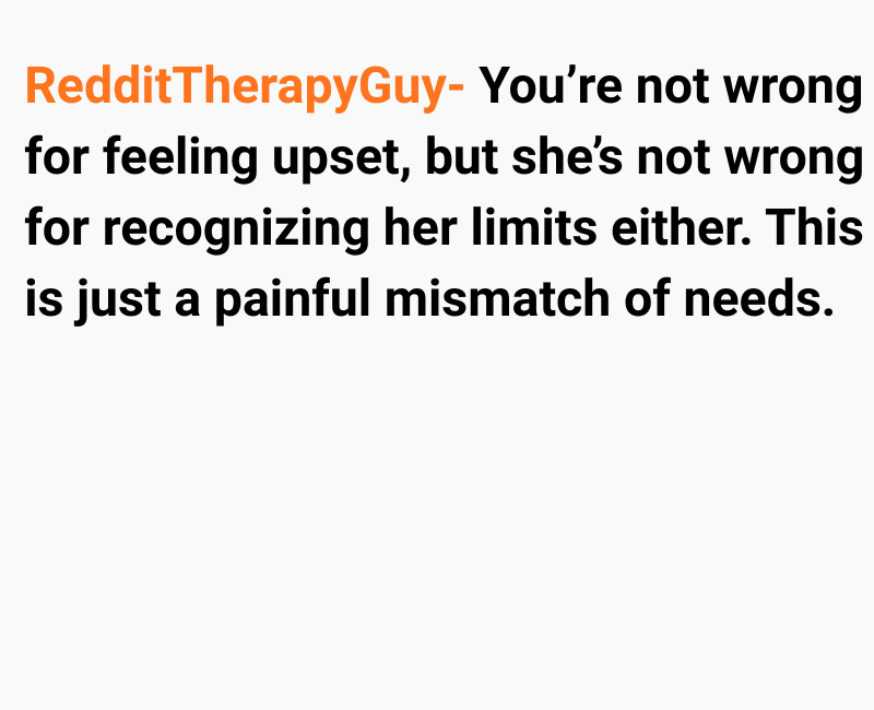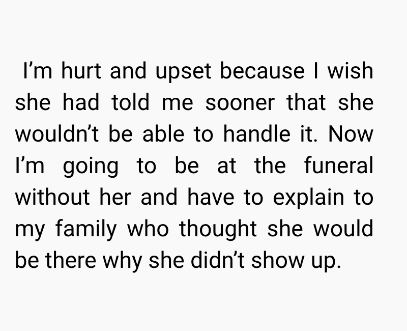 I’m left feeling conflicted between understanding her emotional limits and feeling hurt by the timing of her decision. I know she struggles deeply with death-related situations, and I don’t want to dismiss that.