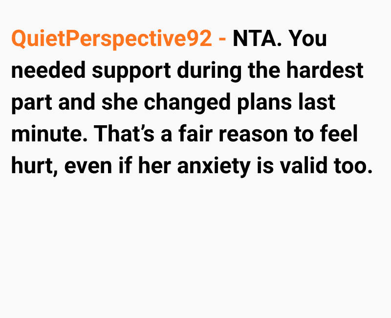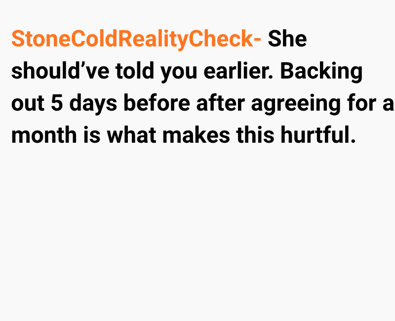 Now I feel hurt and upset by the last-minute change, and I’m questioning if my reaction is unfair given her situation.