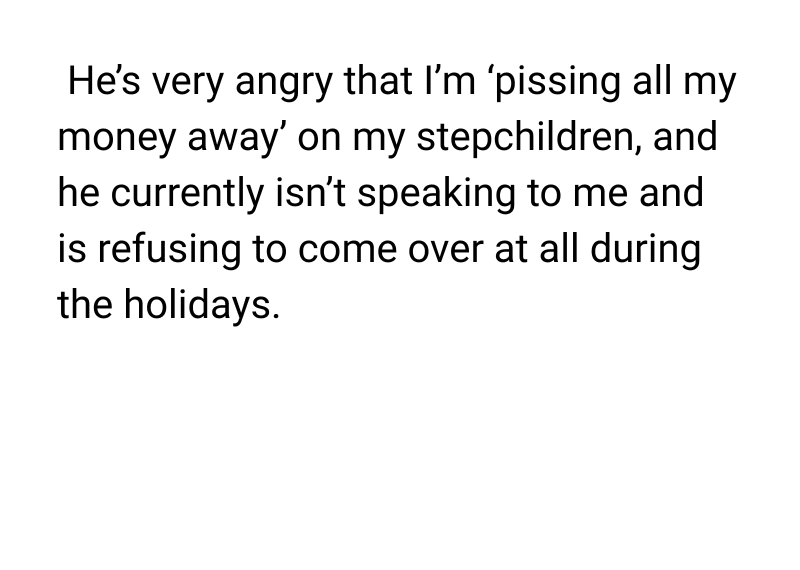 What follows isn’t just a disagreement about money—it’s a clash of values, assumptions, and definitions of responsibility. Is a parent obligated to secure a child’s inheritance at all costs, or is living honestly within one’s means enough? This dilemma forces a difficult question many blended families eventually face: where does love end and entitlement begin?