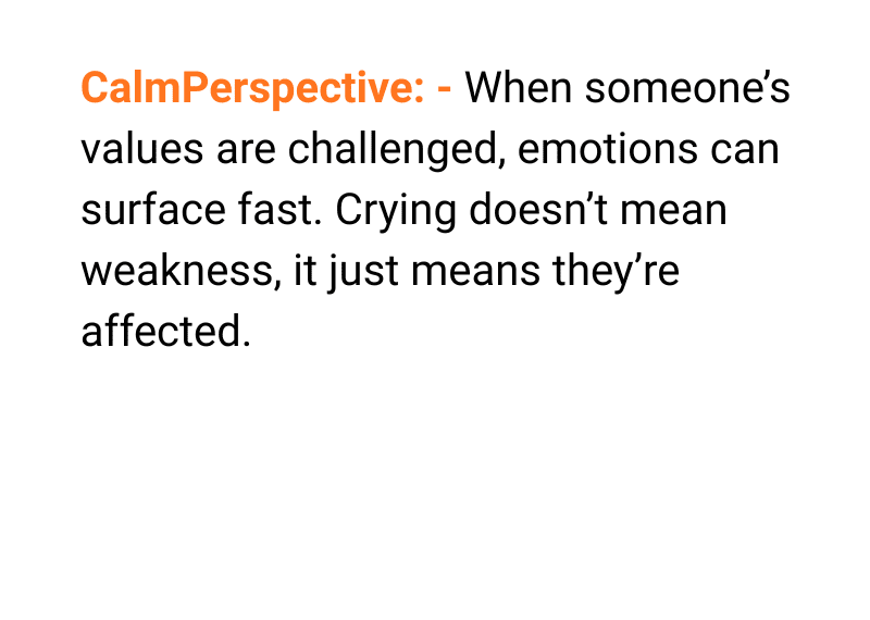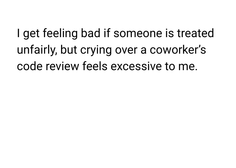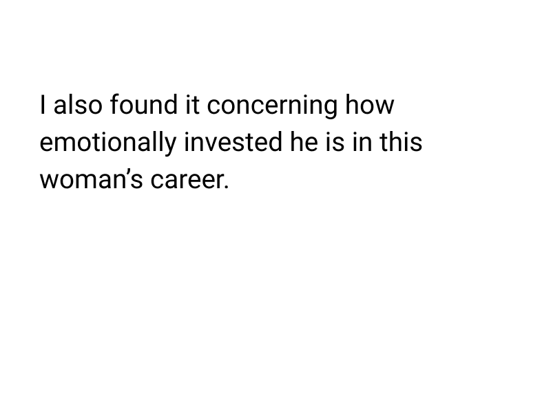 While I understand wanting to support someone who faces bias, his intense reactions—tears, shaking voice, and deep emotional investment in her professional success—made me uncomfortable.