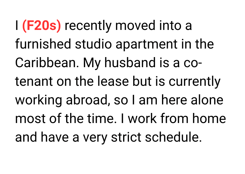 Moving into a new apartment can be exciting, but it can also come with unexpected challenges especially when it comes to privacy and trust. In this story, a young woman recently relocated to a furnished studio in the Caribbean, while her husband works abroad.