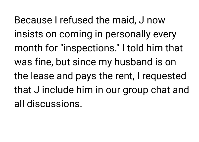 AITA for refusing my landlord’s “mandatory” maid and insisting my husband join our calls