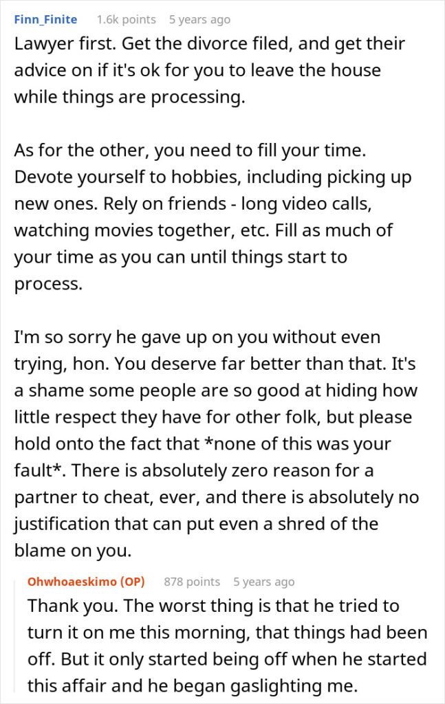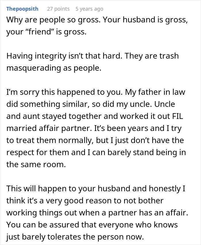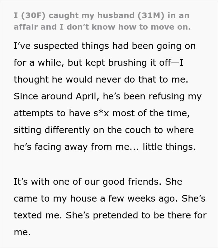 Sometimes everything has to fall apart before life can be rebuilt into something stronger. That’s exactly what happened to this Redditor after discovering her husband was having an affair with one of her friends — and realizing he had no interest in repairing their marriage.
