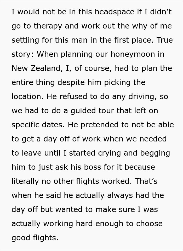 Shattered and overwhelmed, she couldn’t imagine ever healing from the betrayal. But with time, she rebuilt her world piece by piece. She rediscovered herself, began traveling, embraced new experiences, and found a confidence and freedom she never had before. Meanwhile, her ex could do nothing but watch from the sidelines as she moved on and flourished without him.