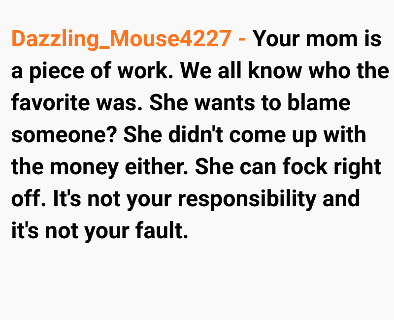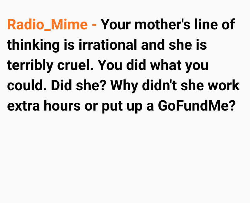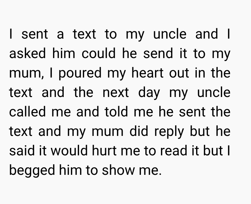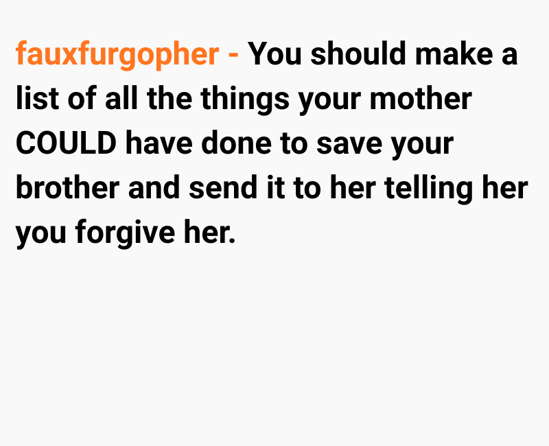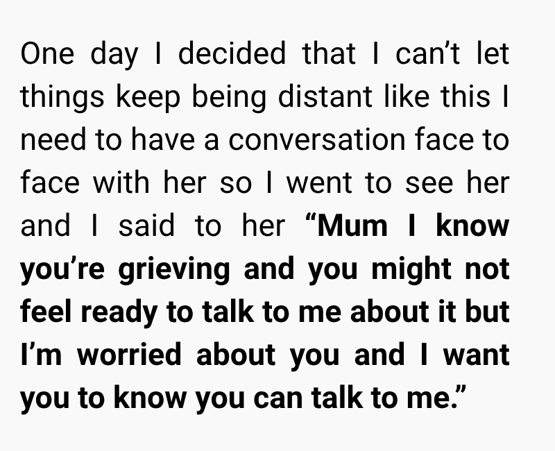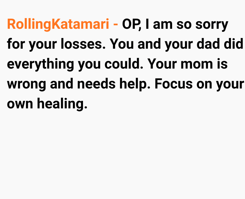 While I was trying to cope with the loss, my mum began to distance herself from me. At first, I thought it was just her way of grieving, but things took a painful turn when she told me she blamed me for not doing enough to save him. Since then, she has completely cut me out of her life, leaving me grieving two losses at once.