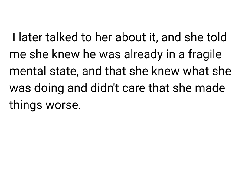 But everything changed in one moment. When a member of our friend group broke down during a really fragile moment, she didn’t comfort him—she attacked him. And when I confronted her, she admitted she knew he was struggling and simply didn’t care.