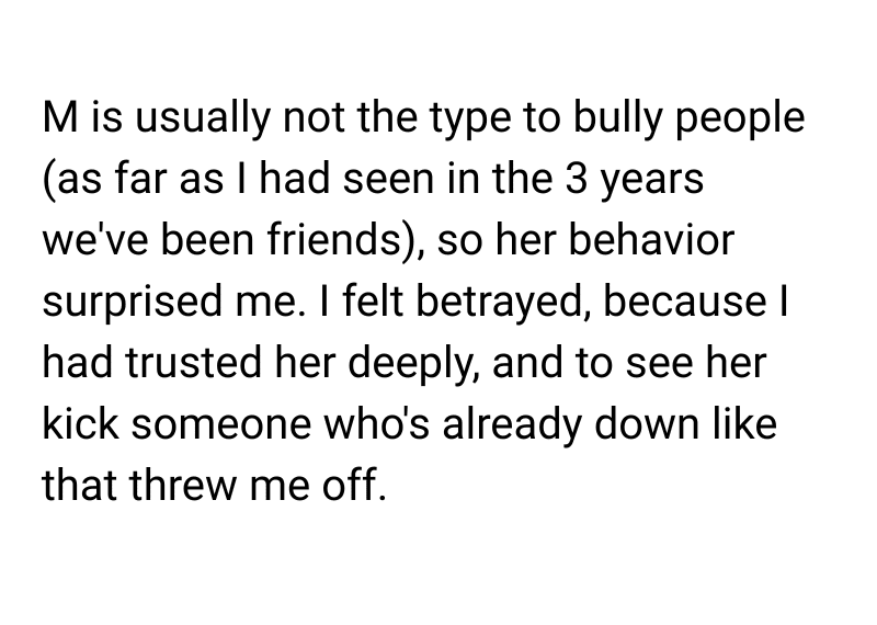 But friends shouldn’t tear others down, especially when they’re vulnerable, and standing by silently would’ve made me part of the problem. Maybe she’ll reflect, maybe things will change someday, or maybe this chapter is simply meant to end here. Either way, I’m learning that boundaries matter—even when they cost you someone you never thought you’d lose.