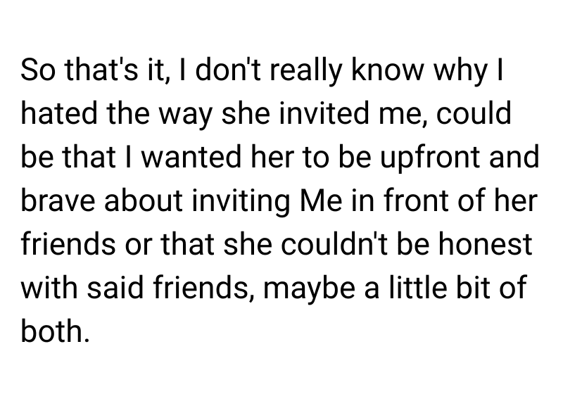 Maybe she didn’t intend any harm, and maybe I expected a different level of openness from her. But feelings are still feelings, and it’s okay to acknowledge when something doesn’t sit right with you. The important part is learning from the moment rather than holding onto frustration.